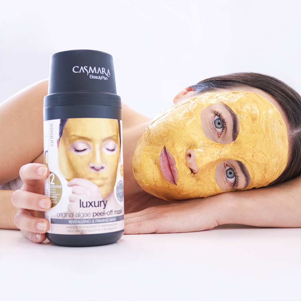 Máscara algae peel-off revitalizante e iluminadora, con algas marinas, polvo de oro de 24K, vitaminas y minerales. Efecto buena cara al instante.